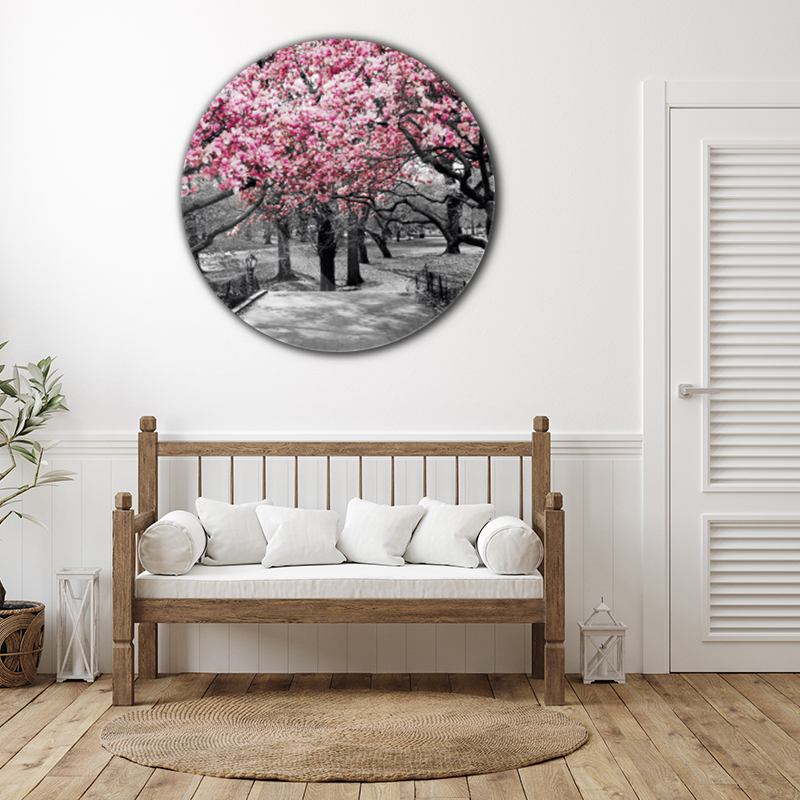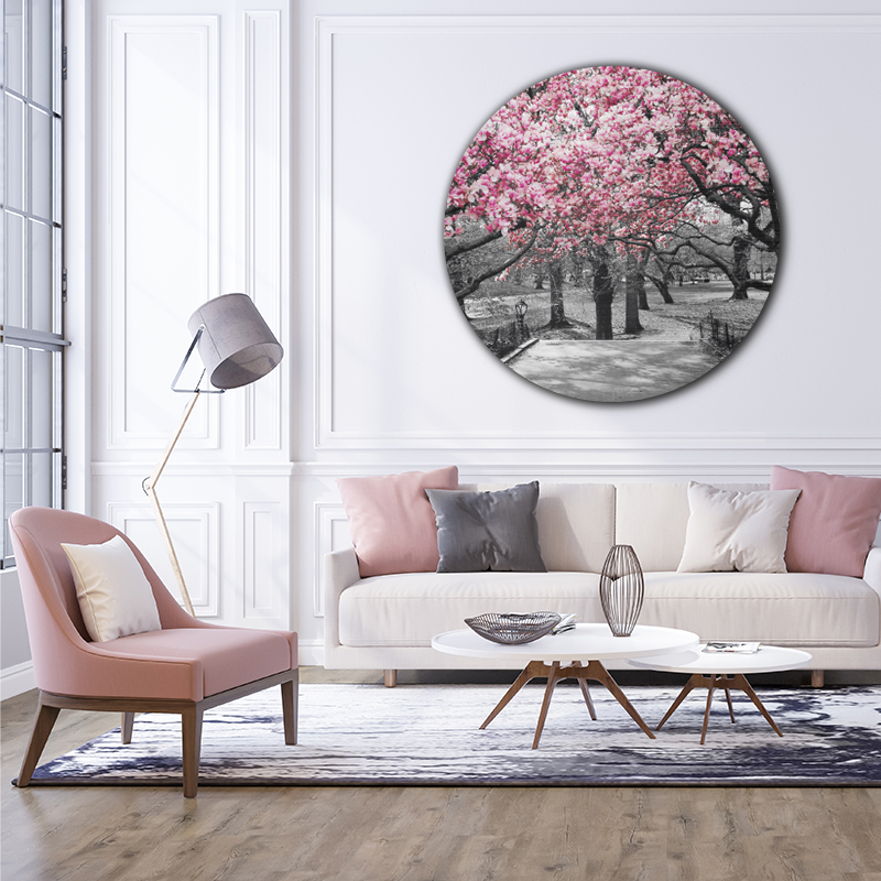Pixel ToF Muurcirkel landschap Central Park, New York zwart-wit met roze | ToF aan je muur