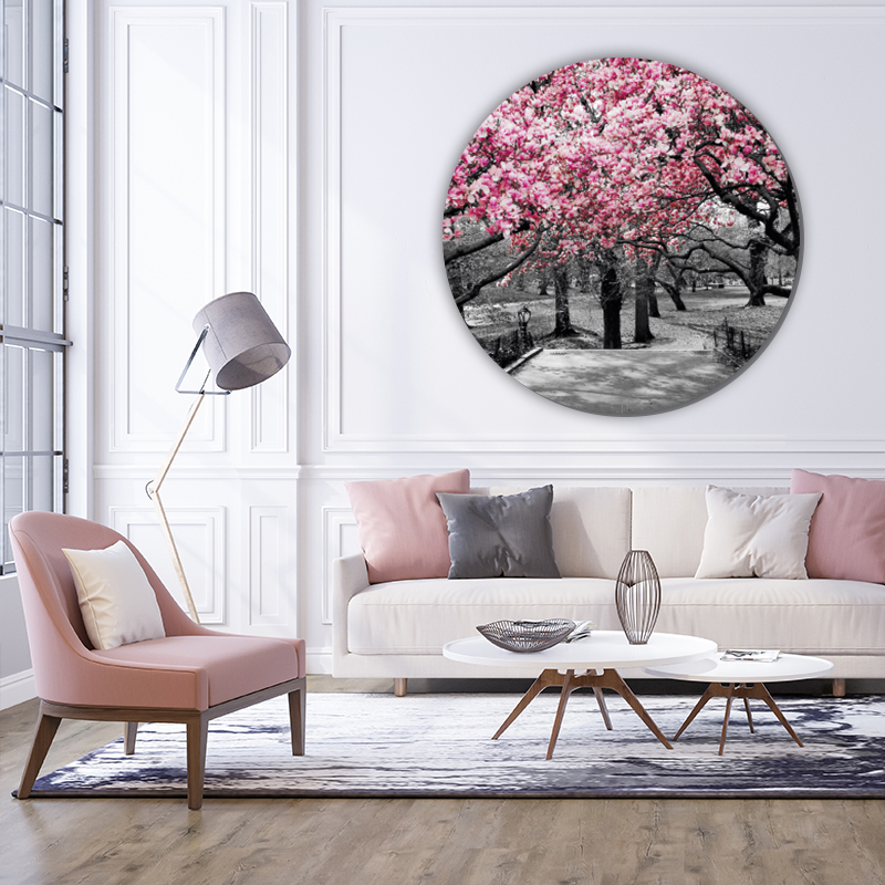 ToF Muurcirkel landschap Central Park, New York zwart-wit met roze