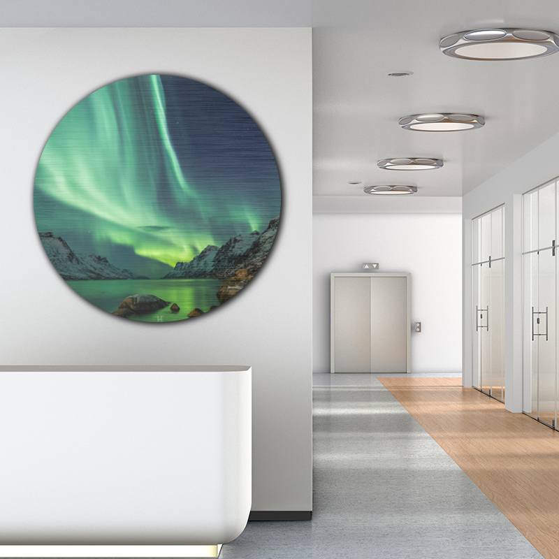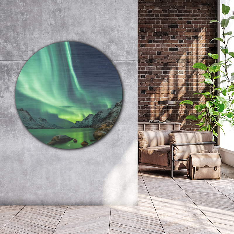 Het Noorderlicht, ook wel poollicht genoemd, is een van de meest bijzondere natuurfenomenen. Je kunt het Noorderlicht alleen zien als het donker is en dan ook alleen op bepaalde plaatsen. Behalve het Noorderlicht heb je ook nog het Zuiderlicht. Deze wanddecoratie van het Noorderlicht is prachtig. Bij ons kun je deze als muurcirkel en liggende muurdecoratie kopen. Ook kun je uit verschillende materialen kiezen: plexiglas, aluminium en hout.