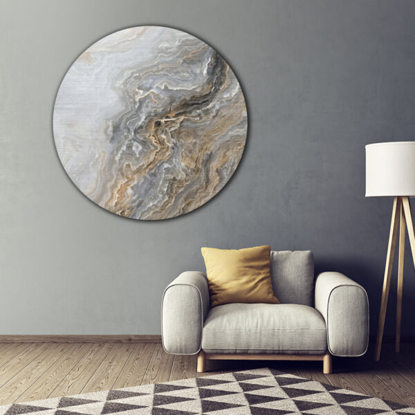 ToF Muurcirkel natuur prachtig grijs krullend marmer met gouden nerven