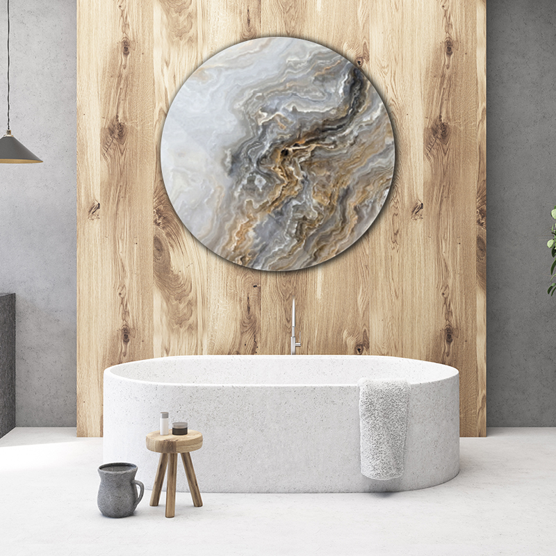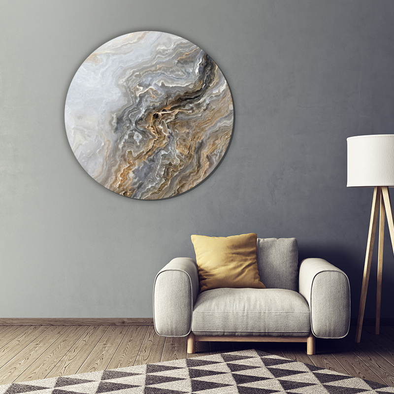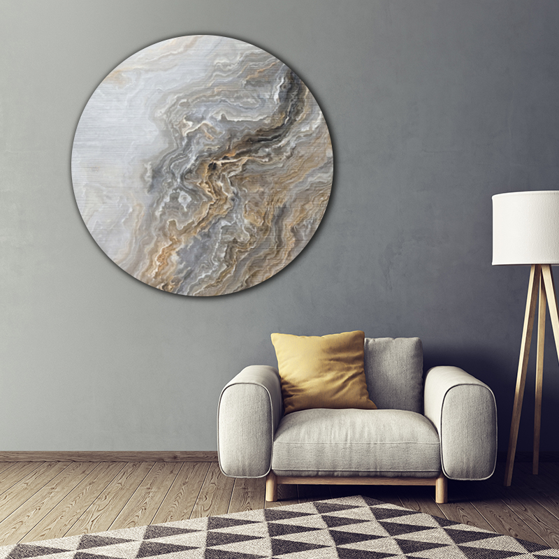 Pixel ToF Muurcirkel natuur prachtig grijs krullend marmer met gouden nerven | ToF aan je muur