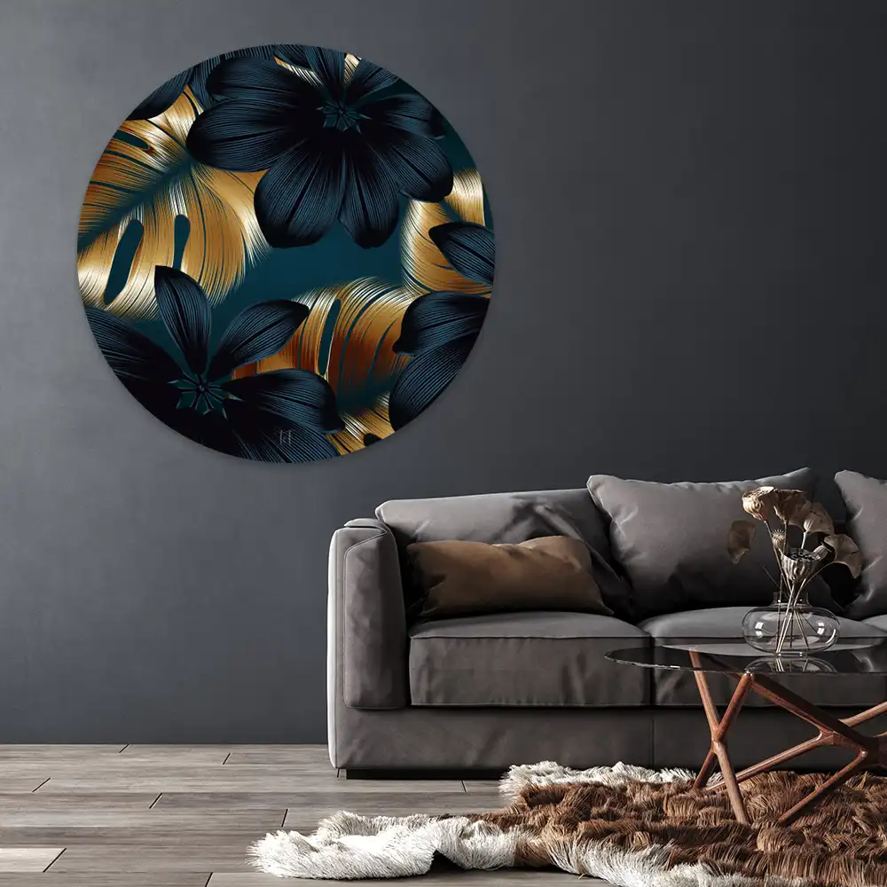 ToF Muurcirkel planten gouden en blauwe monsterabladeren