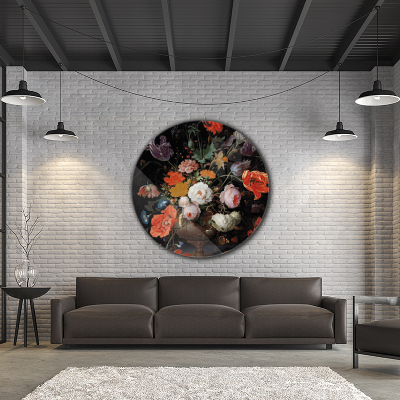 Pixel ToF Muurcirkel schilderij Stilleven met bloemen en een horloge, Abraham Mignon | ToF aan je muur