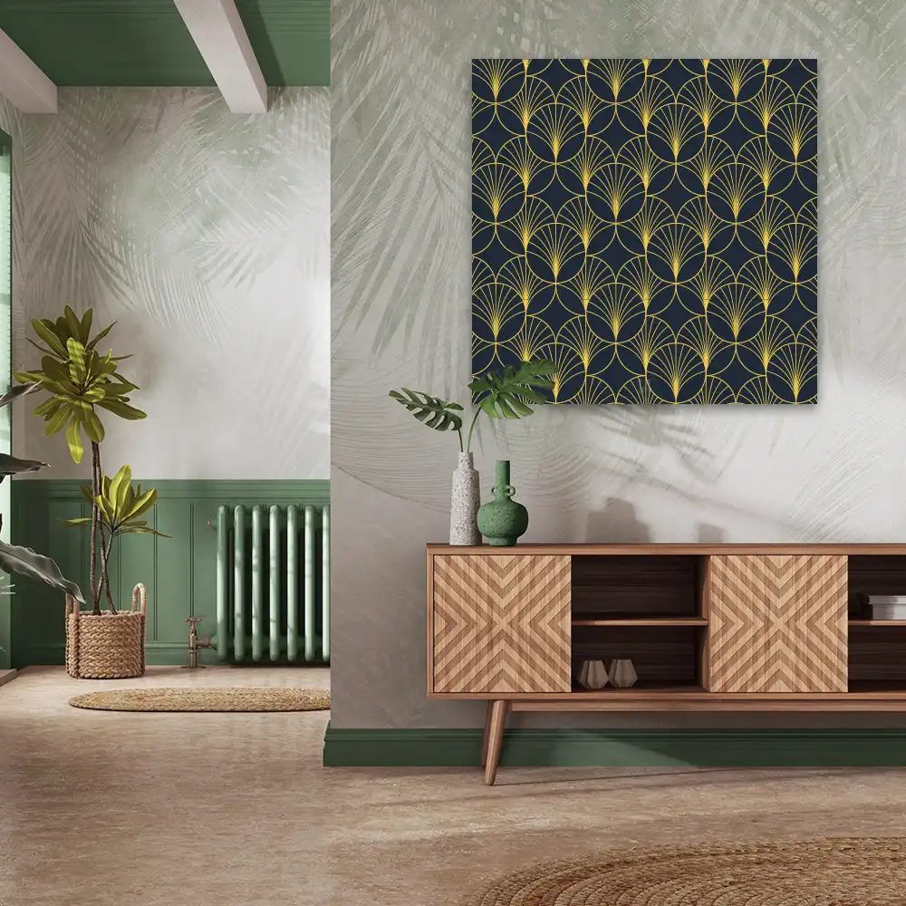 Pixel ToF Wanddecoratie kunst gouden patronen op donkerblauwe achtergrond | ToF aan je muur