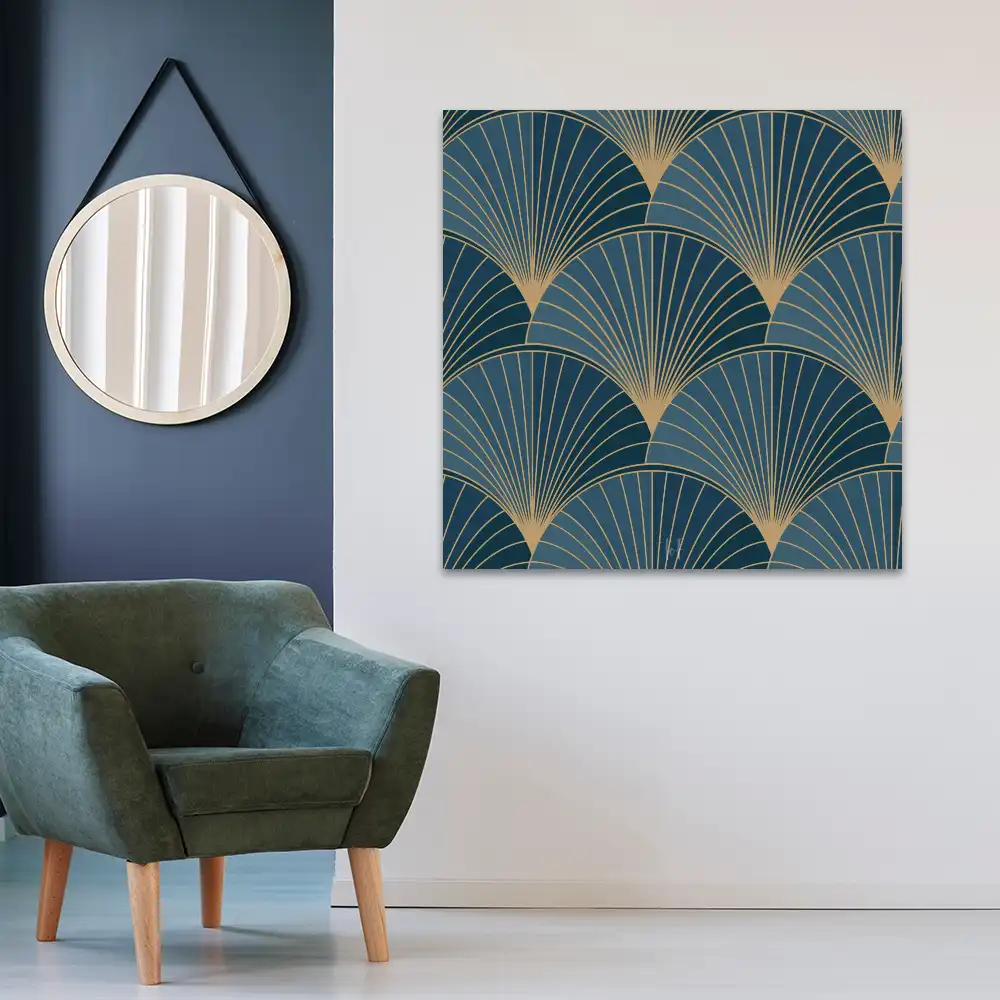 Pixel ToF Wanddecoratie kunst schelpen in blauw en goud | ToF aan je muur