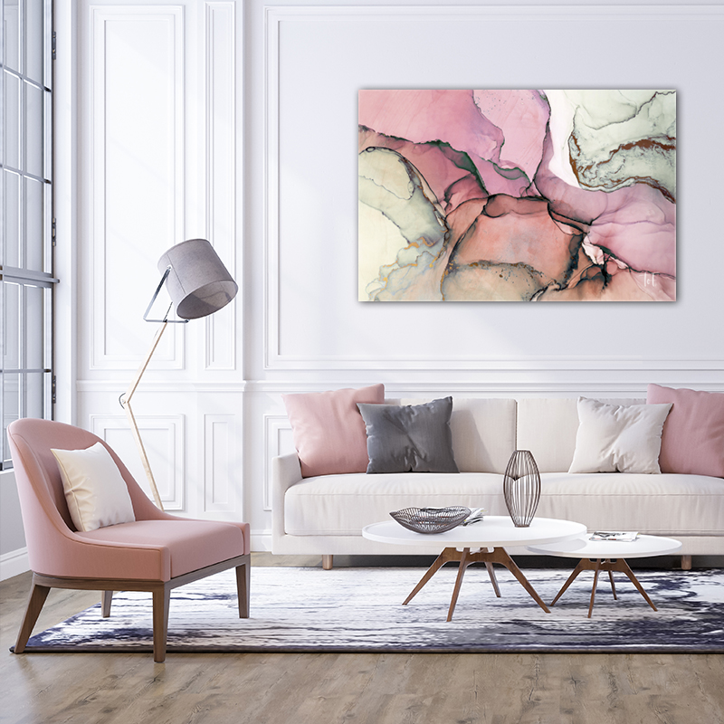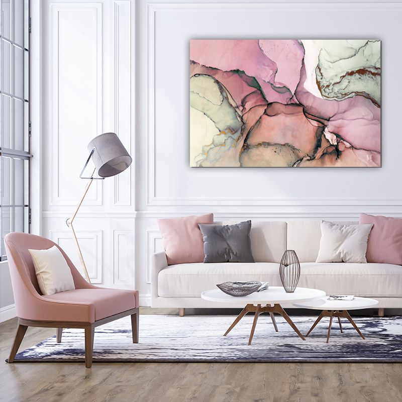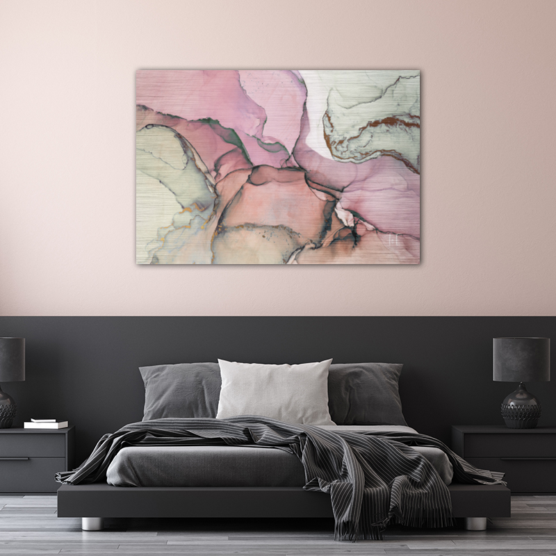 Droom weg bij deze mix van zoete kleuren. Laat je verassen door het effect van dit kunstwerk aan je muur. Zacht roze kleuren in combinatie met grijstinten. Te leveren in verschillende materialen zoals Dibond butler finish, hout, canvas en plexiglas. Een museumstuk in jouw woonkamer, slaapkamer of studeerkamer.
