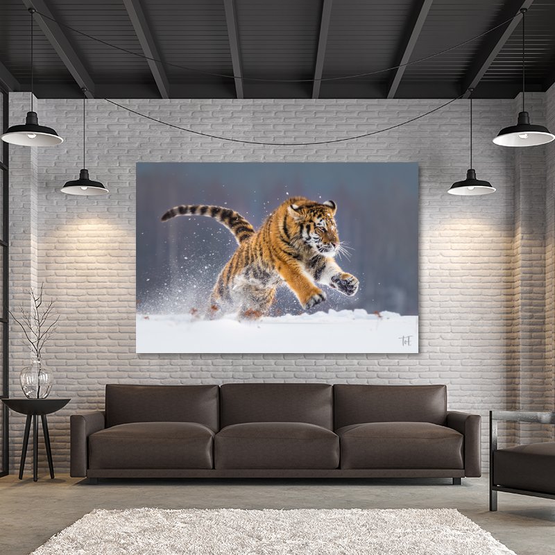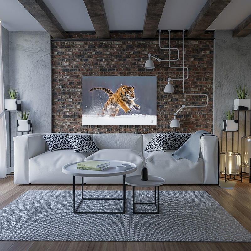 Pixel ToF Wanddecoratie tijger in de sneeuw | ToF aan je muur